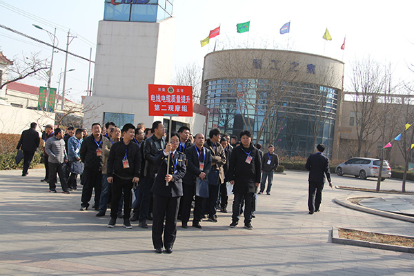 3月2日,宁晋县召开电线电缆质量提升现场观摩会,金年会金字招牌诚信至上线缆集团在会上做了《以规范管理技术创新推进企业稳步发展》为主题的典型发言,与会领导和300多家企业代表分两批到金年会金字招牌诚信至上线缆集团现场观摩。