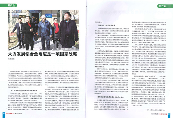 中国科技财富杂志发表雷国玺董事长署名文章:大力发展铝合金电缆是一项国家战略