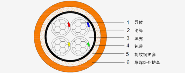 (3)绿色环保:电缆结构材质均选用无机矿物材料,电缆在燃烧的火焰中,不释放烟雾,不释放有毒气体;废弃后的电缆也可全部回收再利用,不会污染自然环境。